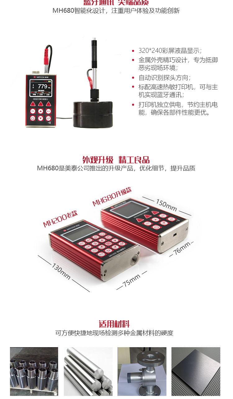 產(chǎn)品概述MH680便攜式里氏硬度計(jì)是定制化在線硬度檢測(cè)系統(tǒng)的配套產(chǎn)品,它可實(shí)現(xiàn)藍(lán)牙無(wú)線傳輸數(shù)據(jù),將自動(dòng)化硬度檢測(cè)系統(tǒng)工作中采集的硬度值傳輸至電腦端,通過(guò)藍(lán)牙接口與儀器進(jìn)行通訊,實(shí)現(xiàn)在線實(shí)時(shí)監(jiān)測(cè)數(shù)據(jù),對(duì)超出范圍的不良品及時(shí)報(bào)警或自動(dòng)噴標(biāo)處理,針對(duì)檢測(cè)量大、效率要求高的用戶需求,可解放人力、提高生產(chǎn)效率,被廣泛應(yīng)用于量產(chǎn)較大的金屬加工制造業(yè),本公司可提供針對(duì)不同用戶需求的軟硬件定制化服務(wù)。