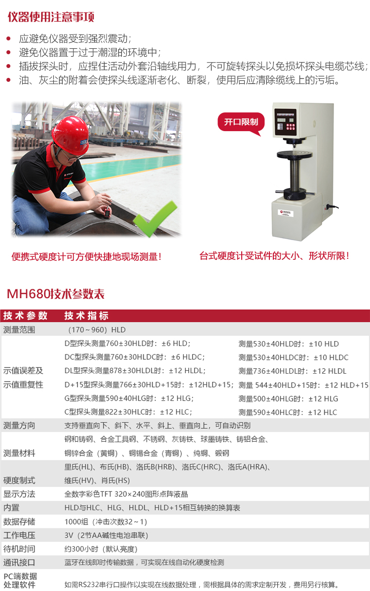 | 硬度制式 | ?里氏(HL)、布氏(HB)、洛氏B(HRB)、洛氏C(HRC)、洛氏A(HRA)、維氏(HV)、肖氏(HS); |