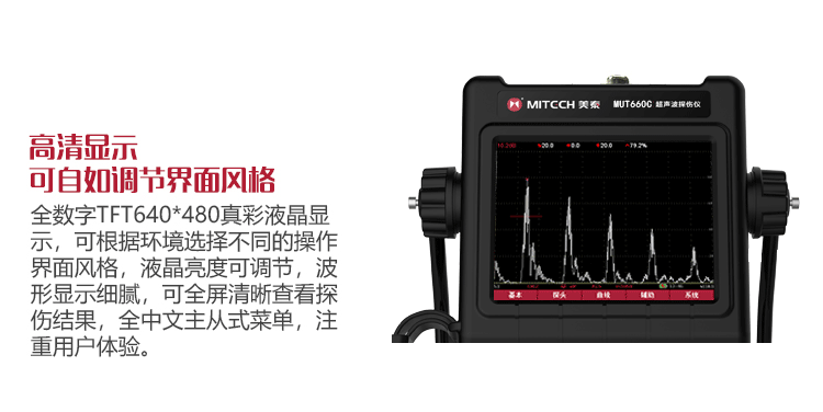 產(chǎn)品概述MUT660C智能數(shù)字式超聲波探傷儀是美泰公司專注多年精心研制的旗艦產(chǎn)品,其設(shè)計獨特、制造精良、操作便捷、功能強勁,集諸多優(yōu)勢于一身,自問世以來一直倍受用戶親睞,它能夠快速便捷、無損傷、精確地進行工件內(nèi)部多種缺陷(裂紋、夾雜、氣孔等)的檢測、定位、評估和診斷。采用全數(shù)字TFT 640×480真彩色液晶顯示屏,可根據(jù)環(huán)境選擇操作界面風(fēng)格,液晶亮度可調(diào)節(jié),界面設(shè)計人性化、波形顯示細膩;可全屏清晰發(fā)現(xiàn)缺陷;單手可把持操作,曲線制作、探頭校準(zhǔn)等常規(guī)操作均可自動完成;核心處理器CPU主頻400M,能快速完成復(fù)雜運算,實現(xiàn)智能缺陷分析;低功耗設(shè)計配備大容量高性能鋰離子電池模塊可連續(xù)工作10小時以上;全中文主從式菜單,注重用戶體驗,集快捷按鍵、數(shù)碼飛梭旋輪、十字菜單三種操作方式于一體,不同使用習(xí)慣均可操作自如;支持多語言。防水、防油、防塵可達到IP65防護等級。是石油、化工、冶金、造船、航空、鐵路等領(lǐng)域缺陷檢測、質(zhì)量控制、在役安全監(jiān)測與壽命評估必備的專業(yè)精密儀器。