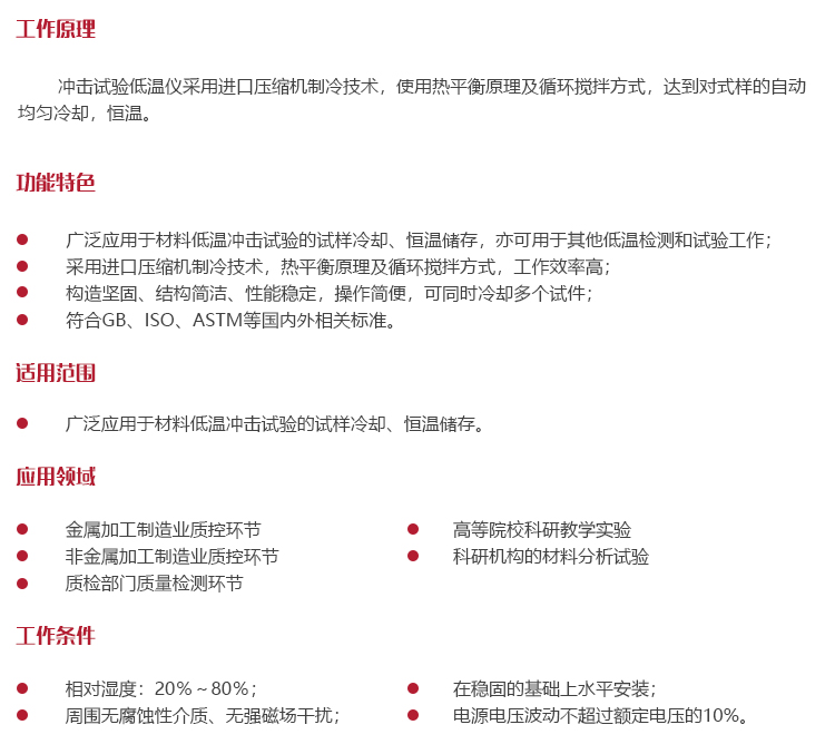 儀器特點(diǎn)廣泛應(yīng)用于材料低溫沖擊試驗(yàn)的試樣冷卻、恒溫儲(chǔ)存,亦可用于其他低溫檢測和試驗(yàn)工作;