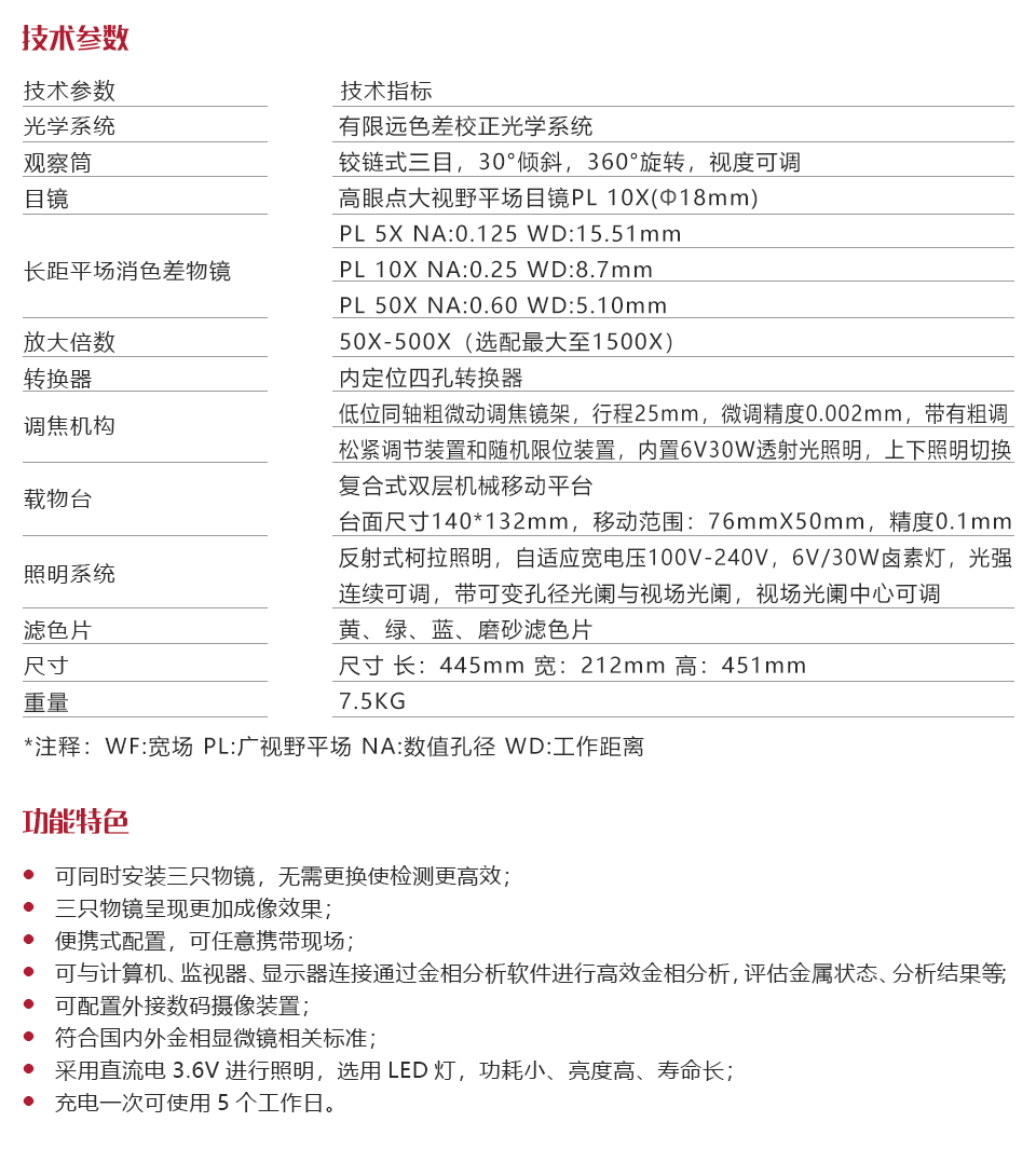 儀器特點(diǎn)透反射照明系統(tǒng),可應(yīng)用于透明與不透明物體的觀察;