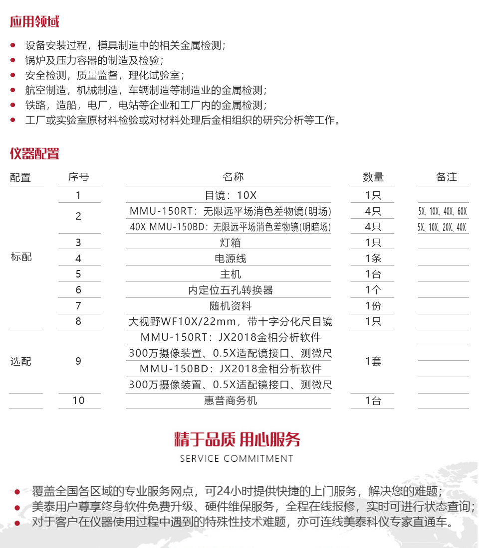 MMU-150BD配置明/暗視場(chǎng)兩用物鏡,可用于明/暗場(chǎng)顯微觀察;MMU150-RT配明場(chǎng)物鏡;