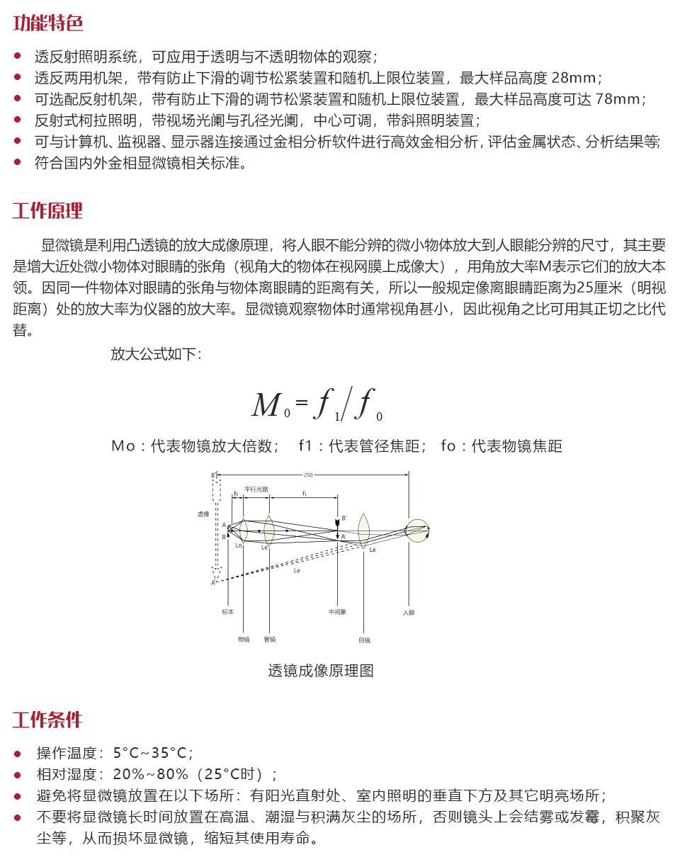 儀器特點(diǎn)透反射照明系統(tǒng),可應(yīng)用于透明與不透明物體的觀(guān)察;