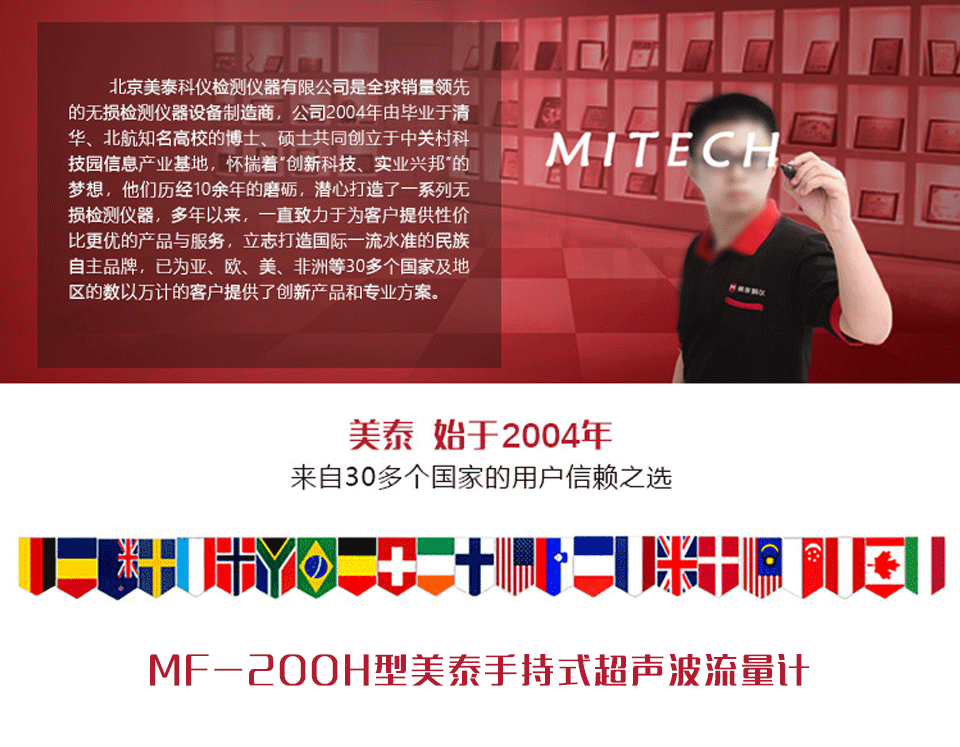 美泰手持式超聲波流量計MF-200H,采用非接觸測量方式,將傳感器安裝在管道外壁即可完成流量的測量,方便準(zhǔn)確??捎糜跍y量各種能夠傳導(dǎo)超聲波的單一均勻的液體的流量及熱量。其體積小,測量范圍大,無可活動機(jī)械部件,不受系統(tǒng)的壓力和惡劣環(huán)境的影響,是檢測水、純水、海水、污水、化工液體、江河水、燃料油等流體流量及熱量的專業(yè)精密儀器。被廣泛應(yīng)用于制冷、供熱、換熱器、冷凍機(jī)、鍋爐等行業(yè)系統(tǒng)能量消耗的計量。