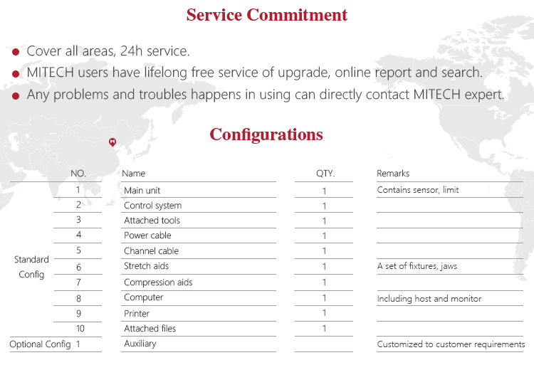 Product OverviewMitech MDW micro control series gate type electronic universal testing machine, through the computer control motor drive screw, equipped with the corresponding auxiliary for metal, non-metallic and composite materials for pull, pressure, bending and other mechanical properties test (Tensile test carried out between the upper beam of the main body and the moving beam. Compression and bending tests carried out between the table of the host and the moving beam). It’s adopts the built-in controller, AC servo motor, by computer-aided means to achieve powerful function with stable performance, strong structure, high reliability, simple operation, high degree of automation. It’s widely used in metal and non-metallic processing industry, quality inspection departments, scientific research and other areas of higher education institutions and it’s a necessary professional precision testing equipment for improve production efficiency and save production costs.