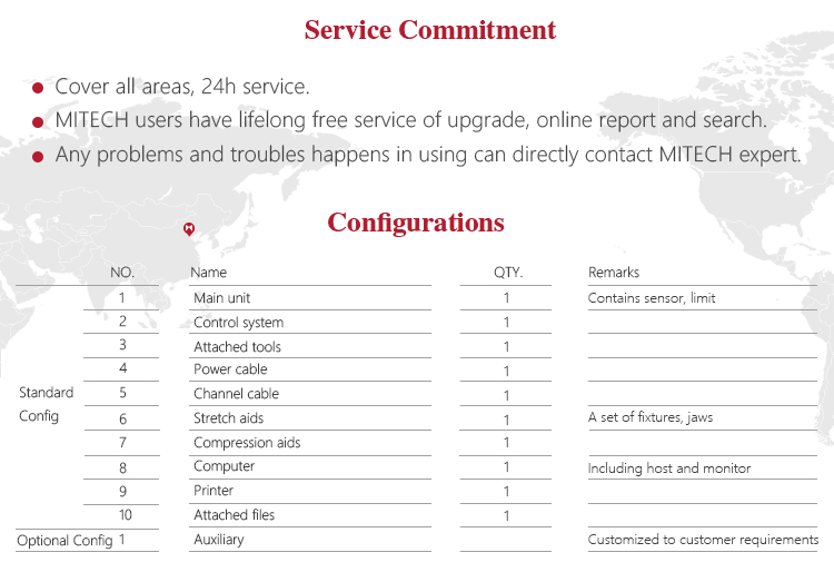 Product OverviewMitech MDW micro control series single-arm electronic tensile testing machine, through the computer control motor drive screw, equipped with the corresponding auxiliary for metal, non-metallic and composite materials for pull, pressure, bending and other mechanical properties test (Tensile test carried out between the upper beam of the main body and the moving beam. Compression and bending tests carried out between the table of the host and the moving beam). It’s adopts the built-in controller, AC servo motor, by computer-aided means to achieve powerful function with stable performance, strong structure, high reliability, simple operation, high degree of automation. It’s widely used in metal and non-metallic processing industry, quality inspection departments, scientific research and other areas of higher education institutions and it’s a necessary professional precision testing equipment for improve production efficiency and save production costs.