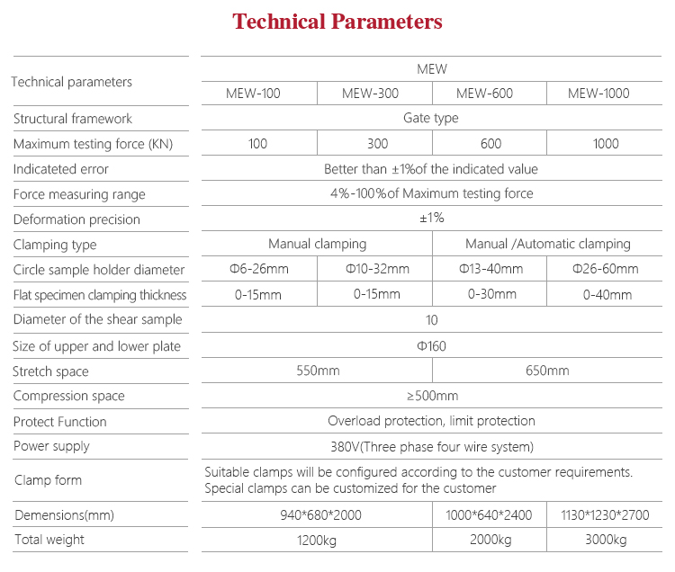 Mitech MEW Micro Control Series Hydraulic Universal Testing Machine through controling high pressure oil pump to drive screw motion, equipped with corresponding auxiliary equipment for metal, nonmetal and composite materials tensile, compression, bending, shear, peel, tear and other mechanical properties test, its clearance seal oil cylinder with high precision, computer display technology, digital processing, high precision data acquisition control technology, its performance is stable, powerful functions, the data processing accurate, is solid in construction, simple structure, high reliability, simple operation, friendly interface. Widely used in metal and non-metallic processing and manufacturing, quality inspection department quality inspection, institutions of higher learning, scientific research test, and other fields, it is to improve the production efficiency, save production costs necessary professional precision testing instrument.