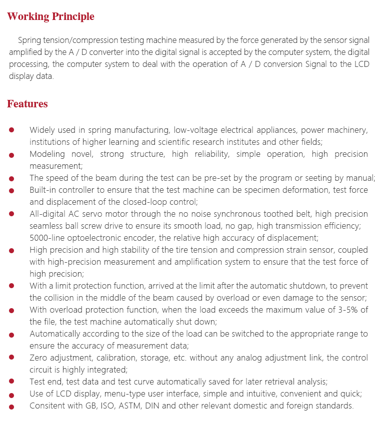 Instrument Featuresl Widely used in spring manufacturing, low-voltage electrical appliances, power machinery, institutions of higher learning and