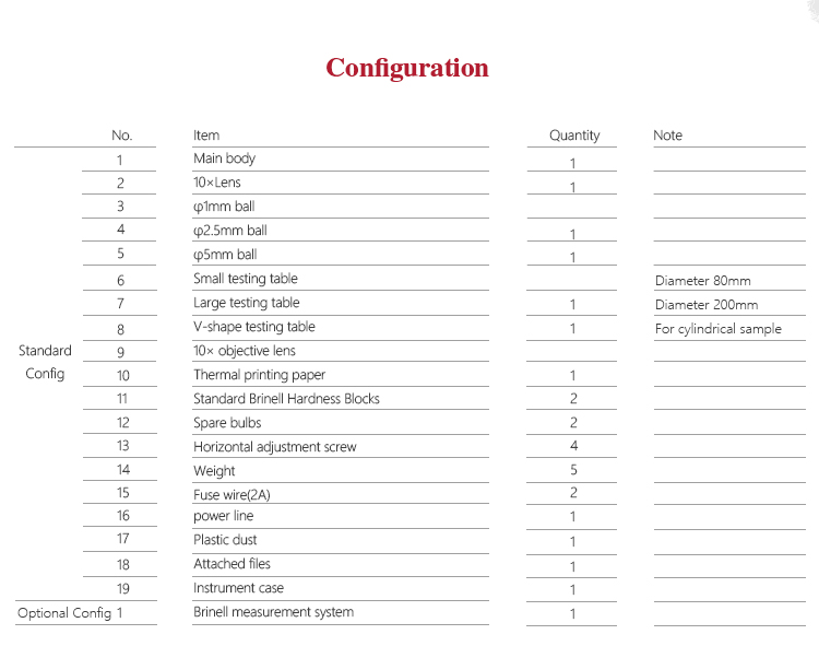 | Brinell scale | HBW2.5/6.25、HBW1/10、HBW2.5/15.625、HBW1/30、 HBW2.5/31.25、HBW2.5/62.5、HBW5/62.5 |