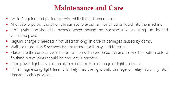 l Make sure the probe is well connected with surface of workpiece, then press the key to magnetize, the result is in good situation.