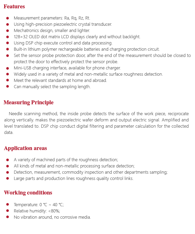 Instrument Featuresl Measurement parameters: Ra, Rq, Rz, Rt.