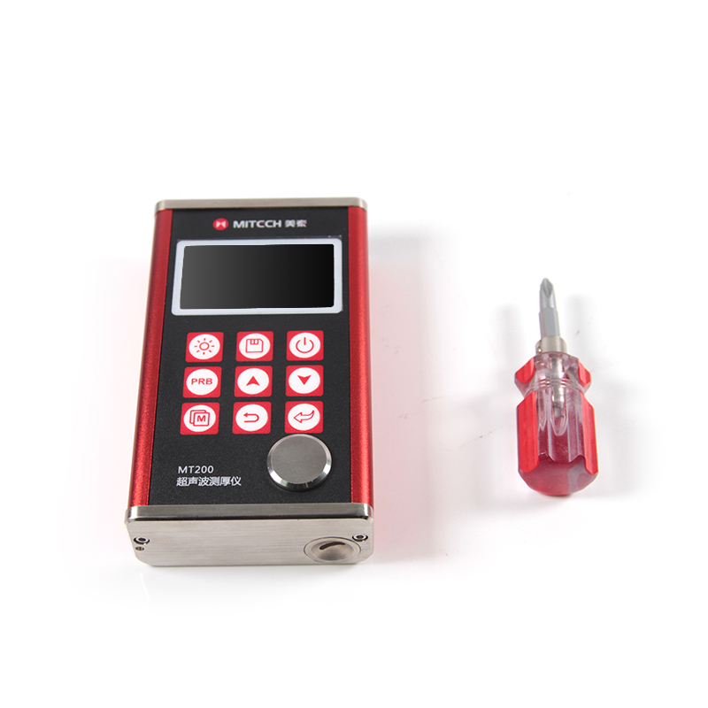 Product OverviewThe model MT200 is a digital ultrasonic thickness gauge. Based on the ultrasonic principle , the instrument is capable of measuring the thickness of various materials, such as metal, plastics, ceramic, glass and many other good ultrasonic conductors. It can also measure the velocity of all kinds of materials. Compared with the traditional measurement methods, the advantages of ultrasonic thickness gauge is exposed to one side of the workpiece to complete the measurement. Its unique non-destructive testing performance provide the perfect solution for the thickness testing of closed pipes, containers, etc. It is widely used in petroleum, chemical, metallurgy, shipbuilding, aviation, aerospace and other fields because of monitoring corrosion thinning degree of various pipes and pressure vessels.It can also be used for precise measurement of sheet metal and machined parts.