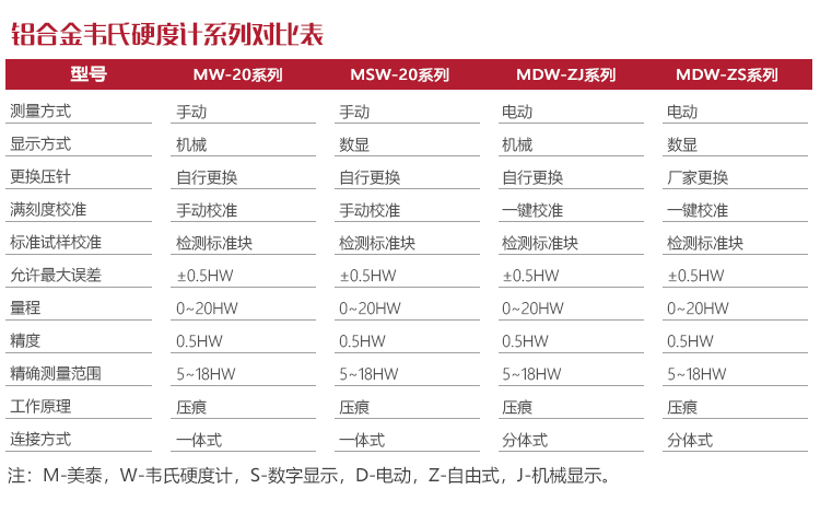 操作方法及注意事項(xiàng)MW-20系列鋁合金韋氏硬度計(jì)設(shè)有MW-20、MW-20a、MW-20b三種型號(hào)。MW-20型為通用型,用于測(cè)量厚度在0.8-6.0mm材料;MW-20a型為厚材專用型,用于測(cè)量厚度在6.0-13mm的材料;MW-20b型為細(xì)管材專用型,用于測(cè)量?jī)?nèi)徑為6.0mm以上的管材。三種型號(hào)的儀器均可用于測(cè)量管材、板材和型材。