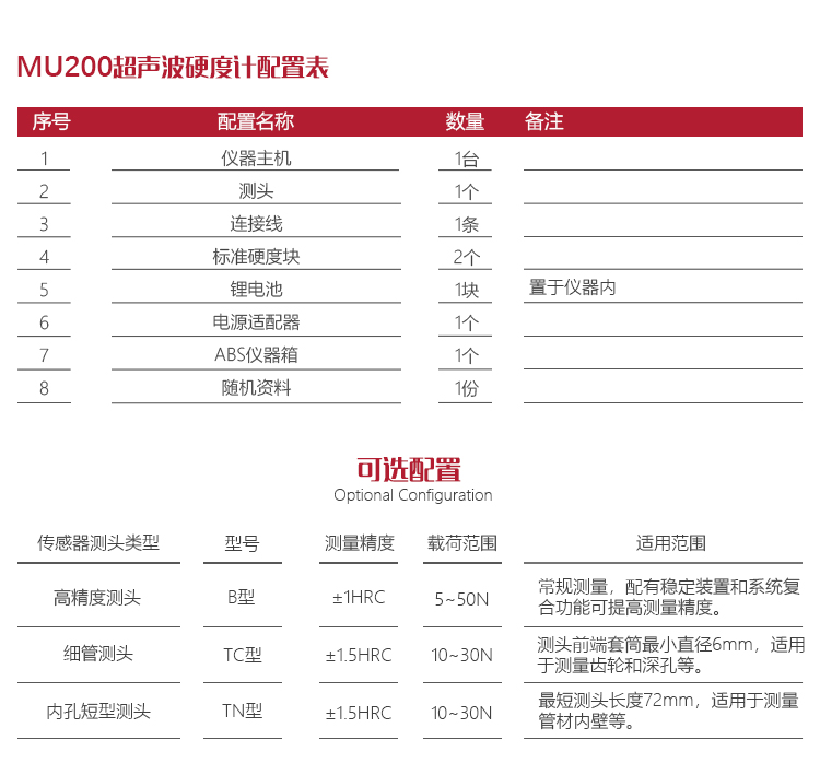 | 美泰MU200超聲波硬度計儀附有專用的隨機裝箱資料。包括產(chǎn)品合格證、保修卡、產(chǎn)品說明書、裝箱清單。隨機資料采用專用的銅版紙印制,說明書的圖文設計美觀、易懂、便于長久保存。注:美泰品牌系列產(chǎn)品的隨機資料均可登陸www.laixueer.cn下載電子版。 | |
