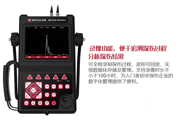 產(chǎn)品概述MUT660C智能數(shù)字式超聲波探傷儀是美泰公司專注多年精心研制的旗艦產(chǎn)品,其設(shè)計獨特、制造精良、操作便捷、功能強勁,集諸多優(yōu)勢于一身,自問世以來一直倍受用戶親睞,它能夠快速便捷、無損傷、精確地進行工件內(nèi)部多種缺陷(裂紋、夾雜、氣孔等)的檢測、定位、評估和診斷。采用全數(shù)字TFT 640×480真彩色液晶顯示屏,可根據(jù)環(huán)境選擇操作界面風(fēng)格,液晶亮度可調(diào)節(jié),界面設(shè)計人性化、波形顯示細膩;可全屏清晰發(fā)現(xiàn)缺陷;單手可把持操作,曲線制作、探頭校準(zhǔn)等常規(guī)操作均可自動完成;核心處理器CPU主頻400M,能快速完成復(fù)雜運算,實現(xiàn)智能缺陷分析;低功耗設(shè)計配備大容量高性能鋰離子電池模塊可連續(xù)工作10小時以上;全中文主從式菜單,注重用戶體驗,集快捷按鍵、數(shù)碼飛梭旋輪、十字菜單三種操作方式于一體,不同使用習(xí)慣均可操作自如;支持多語言。防水、防油、防塵可達到IP65防護等級。是石油、化工、冶金、造船、航空、鐵路等領(lǐng)域缺陷檢測、質(zhì)量控制、在役安全監(jiān)測與壽命評估必備的專業(yè)精密儀器。