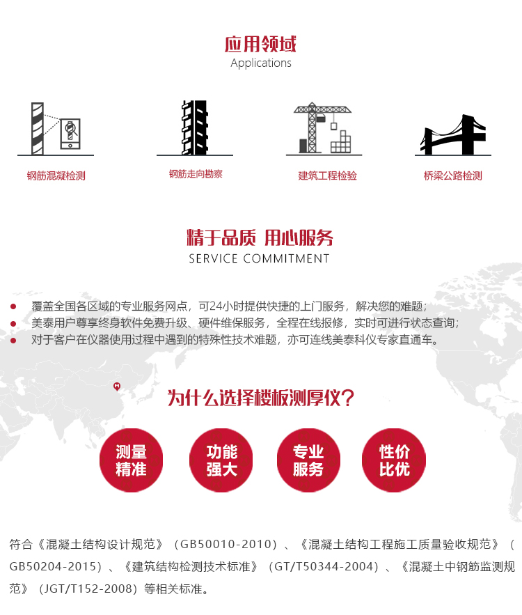 產(chǎn)品概述美泰MNT-100樓板測厚儀,基于電磁波幅值衰減的原理,可有效對混凝土等非鐵磁體介質(zhì)進(jìn)行無損厚度測量。其體積小、重量輕,易于攜帶,使用時,將發(fā)射探頭和接收探頭分別置于被測物體的兩相對測試面,依據(jù)接收信號,即刻測出厚度值。其測值速度快、測量精度高、性能穩(wěn)定可靠,被廣泛應(yīng)用于建筑施工質(zhì)量監(jiān)控檢測等領(lǐng)域,是保障生命財產(chǎn)安全必備的專業(yè)精密檢測儀器。