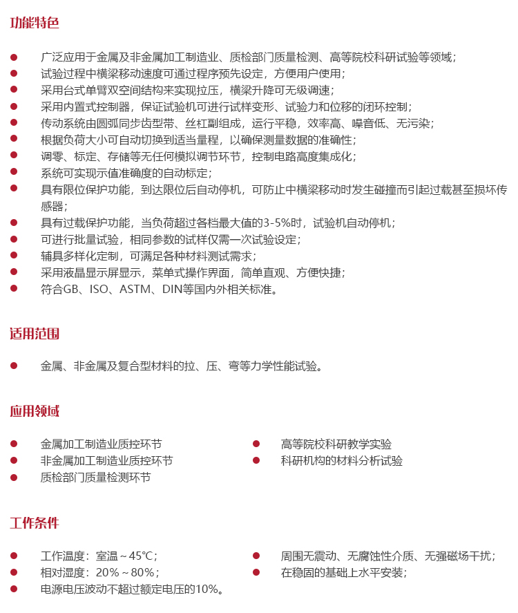 采用臺式單臂雙空間結(jié)構(gòu)來實現(xiàn)拉壓,橫梁升降可無級調(diào)速;