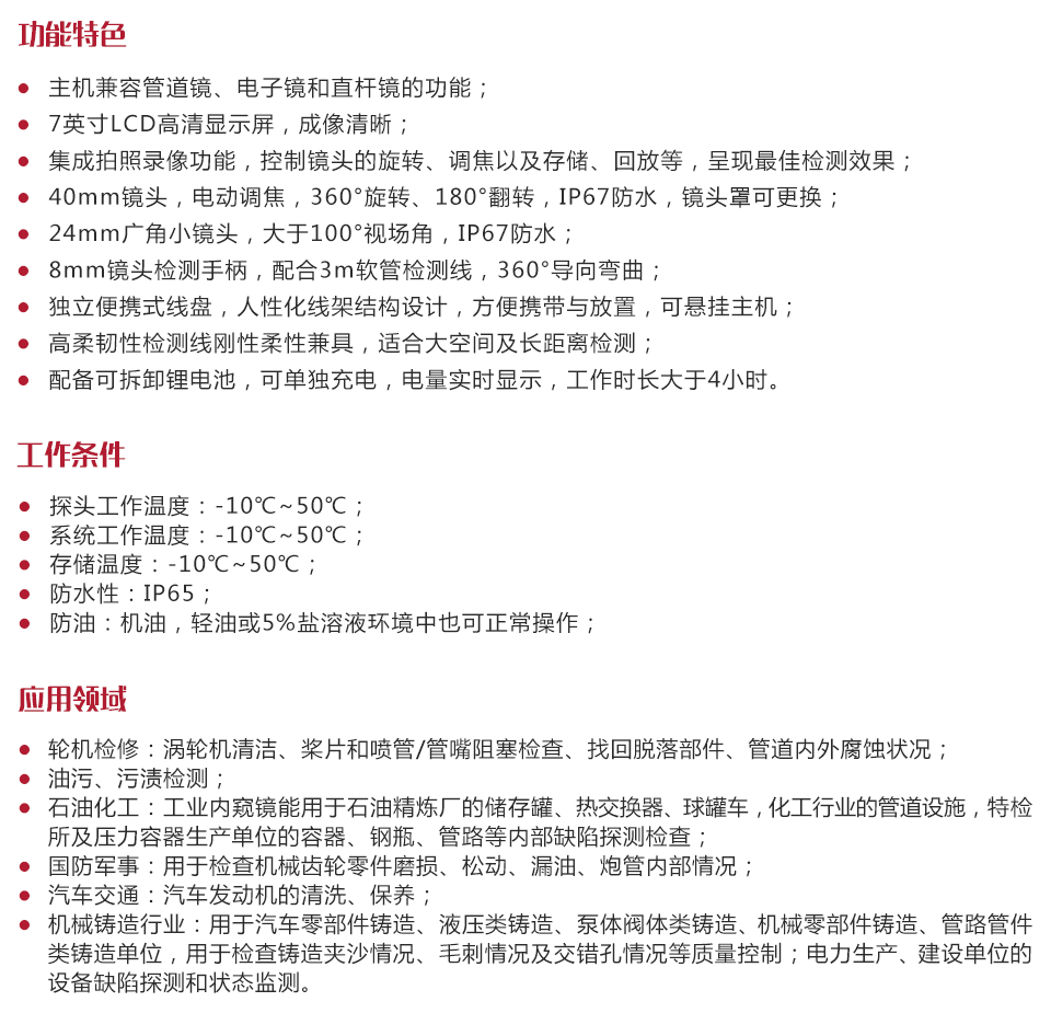 4、國(guó)防軍事:用于檢查機(jī)械齒輪零件磨損、松動(dòng)、漏油、炮管內(nèi)部情況;
