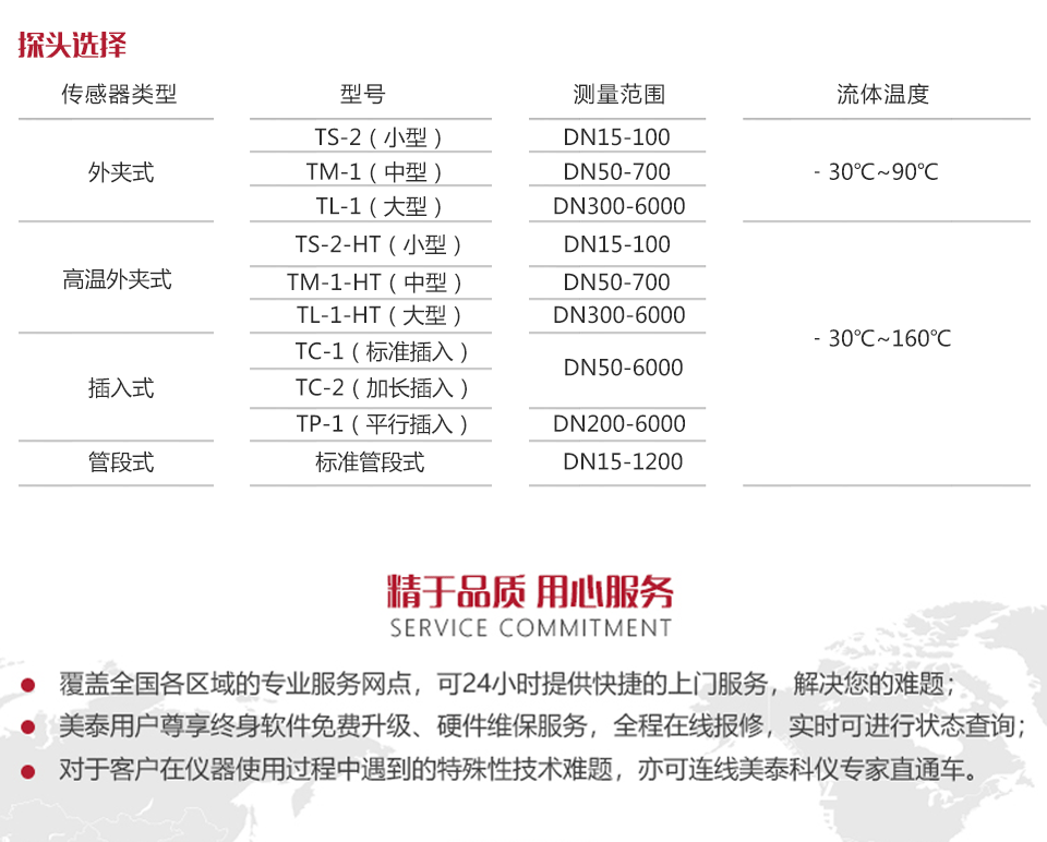 傳感器溫度:外夾式:﹣30℃~90℃;高溫外夾式、插入式、管段式:﹣30℃~160℃;