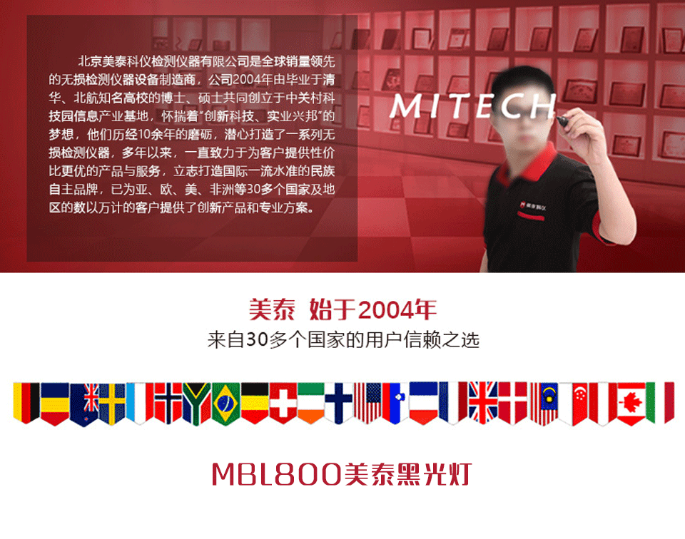 美泰LED紫外線燈(黑光燈)MBL800,采用原裝進(jìn)口光源UVLED,可達(dá)到超高照度,極低功耗,光源平均壽命可達(dá)20000H。UV和白光可切換,是熒光磁粉探傷、滲透探傷、特種氣體、油氣管道等領(lǐng)域必備的即開即用型手持式照明設(shè)備。