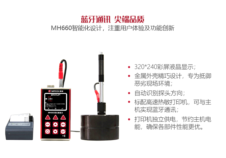 產(chǎn)品概述MH660便攜式里氏硬度計是美泰公司新推出的升級產(chǎn)品,它更加注重用戶體驗及功能創(chuàng)新。采用320×240彩色液晶顯示屏,光線昏暗及日光強(qiáng)烈環(huán)境下也能為您呈現(xiàn)清晰測量結(jié)果,大大提升了視覺體驗;密封的金屬外殼精巧設(shè)計,體積更小、品質(zhì)更優(yōu),專為抵御惡劣現(xiàn)場環(huán)境中的油污、粉塵而設(shè)計;獨創(chuàng)的多點校準(zhǔn)功能,可對轉(zhuǎn)換曲線進(jìn)行多點調(diào)校,減小測量誤差;測量中儀器可自動識別測量方向,滿足高效采集多角度材料硬度的精準(zhǔn)檢測需求,支持多種硬度制氏間的自由轉(zhuǎn)換;低功耗設(shè)計由兩節(jié)AA五號電池供電,可實現(xiàn)藍(lán)牙通訊,支持多語言版本切換。被廣泛地應(yīng)用于金屬加工制造業(yè)、特種設(shè)備或永久性組件的在役失效分析、商檢等領(lǐng)域。特別適宜對大型不可拆卸部件的現(xiàn)場硬度測試。是提高生產(chǎn)合格率、節(jié)約成本必備的專業(yè)精密儀器。